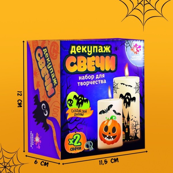 С этим набором вы легко освоите технику декупажа горячим способом и сделаете красивую свечку своими руками. А готовые творения украсят интерьер для празднования Хэллоуина!
