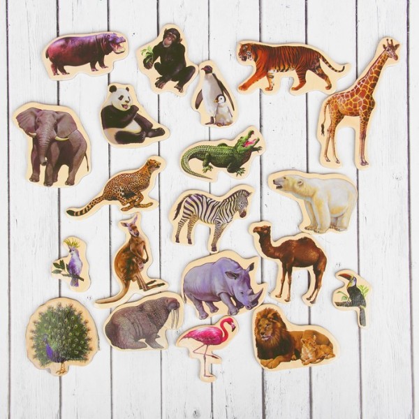 Каждый магнит изготовлен из дерева, что делает его безопасным и приятным на ощупь. Яркие изображения диких животных помогут ребёнку познакомиться с окружающим миром, развить внимание и логическое мышление. Эти элементы также станут основой для творческих игр: придумывайте истории, разыгрывайте сценки или используйте магниты как наглядный материал для обучения.