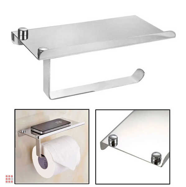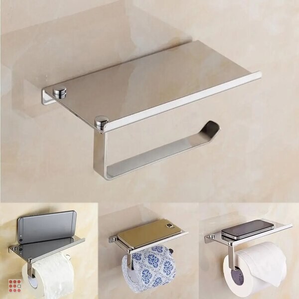 Держатель для туалетной бумаги крепится на стену в туалете, чтобы подвешивать рулон туалетной бумаги. Оснащен полочкой для мобильного телефона или освежителя воздуха. Сделан из нержавеющей стали: прочный, не ржавеет. Универсальный цвет - подходит для туалетов в любой цветовой гамме. Открытого типа: бумагу видно и легко отрывать. Крепления в комплекте.