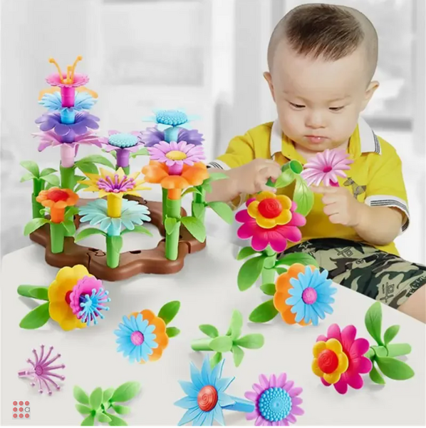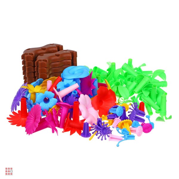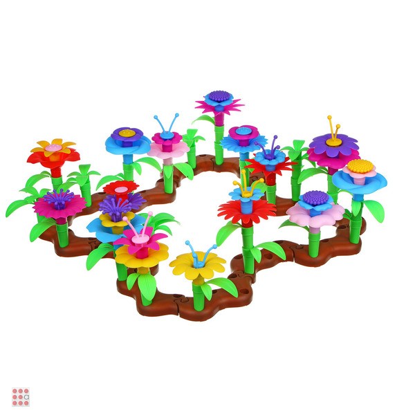 Конструктор Маленький сад - это настоящая цветущая лужайка прямо у Вас дома. Цветочный сад станет ярким украшением любой детской, поможет развитию воображения, мелкой моторики и формированию художественного вкуса. В этот яркий пазл конструктор 3d Ваш ребенок может играть часами, проявляя свою фантазию и каждый раз придумывая все новые цветочные композиций. С помощью этого игрового набора дети без труда своими руками собирают отдельные цветы, букеты, клумбу или цветочный сад. Развивающие игрушки для мальчиков и девочек представлены в 104 элементах, в них входят: цветочки, пестики, тычинки, стебельки и основание. Детали можно комбинировать между собой, придумывая новые виды цветов и высаживать их на полянке. Подходит в качестве игры для детей дома и на улице в песочнице. Развивающий детский конструктор выполнен из качественного безопасного пластика, которые легко мыть в воде