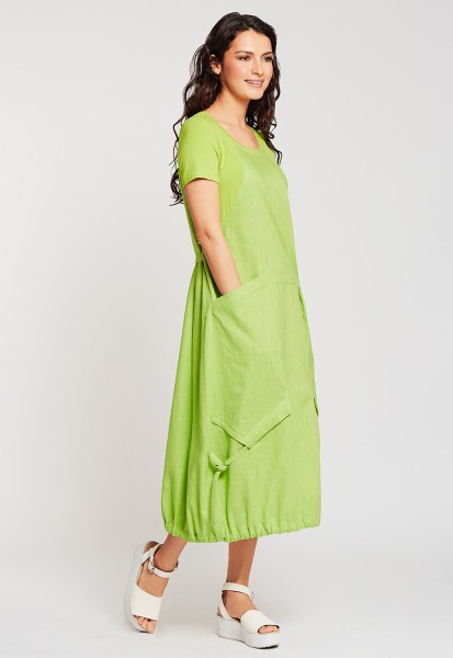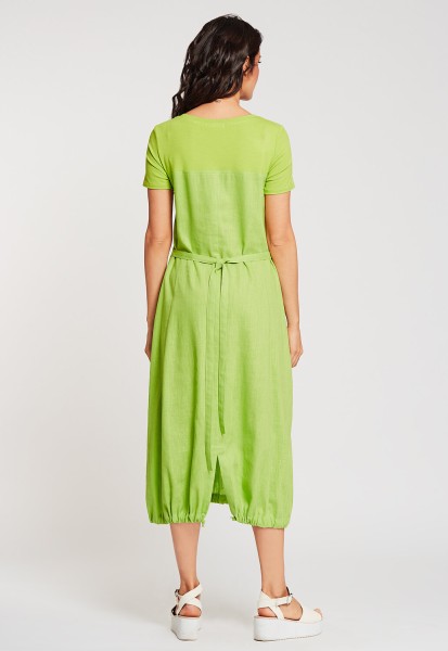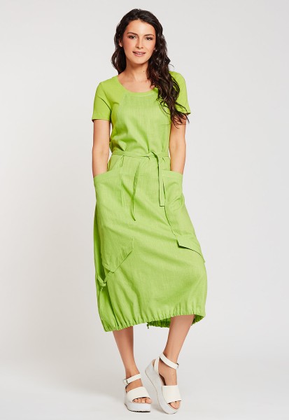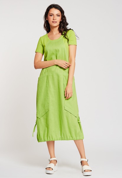 Комбинированное летнее платье с коротким рукавом и глубокими декоративными карманами.