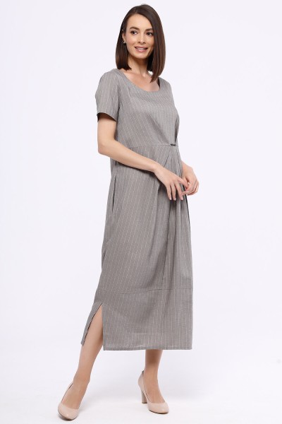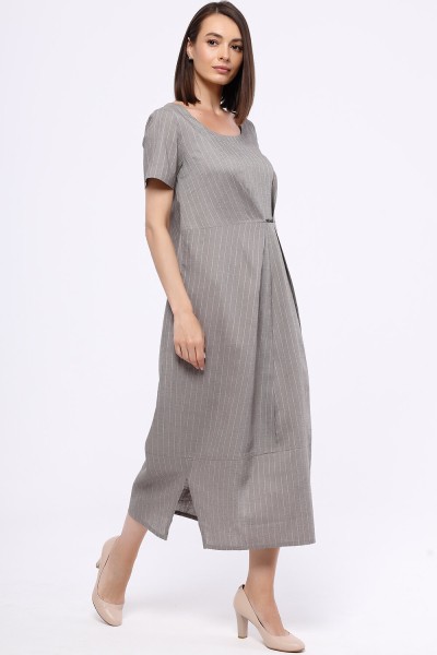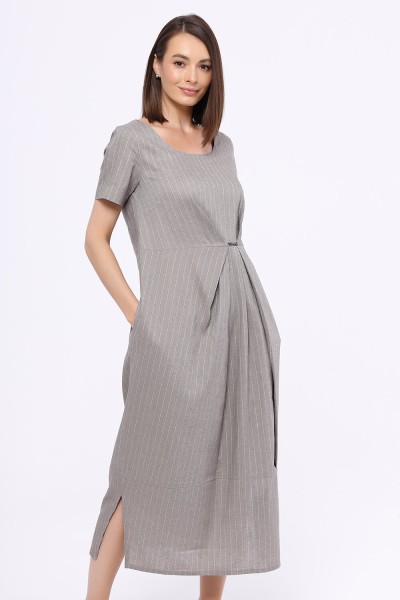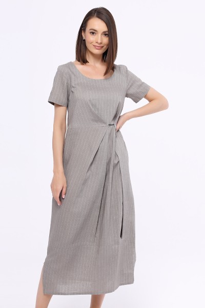 Романтичное летнее платье полуприлегающего силуэта с коротким рукавом и декоративной ассиметричной драпировкой по линии талии из смесовой ткани - лён с полиэстером, российского производства бренда D'imma. Лен в сочетании с полиэстером держит форму, гигроскопичен, менее сминаем. Широкий размерный ряд, в том числе большие размеры.