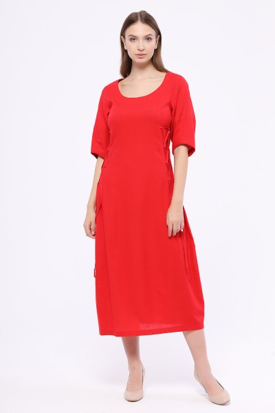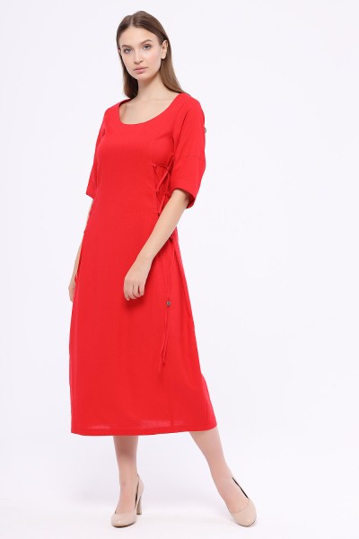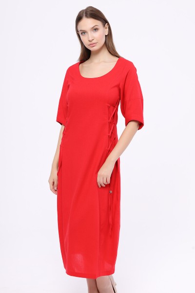 Женственное платье полупрлегающего силуэта со шнуровкой по бокам и оригинальными рукавами из натуральной смесовой ткани российского производства бренда D'imma. Шнуровка позволяет регулировать объем по талии, создавая изящный силуэт.