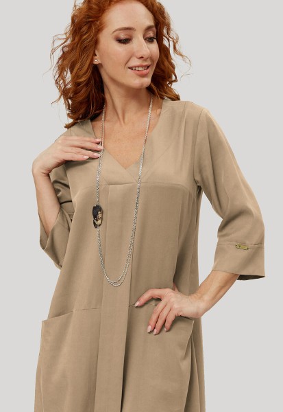 Стильное, универсальное платье в минималистическом кэжуал - стиле комфортной длины от российского производителя D’imma Fashion Studio из натуральной ткани - олицетворение женственности, привлекательности и уверенности. Модель на кокетке с актуальным V-образным вырезом, визуально удлиняющим шею. Вырез обработан широкой обтачкой, переходящей в бантовую складку по центру переда. Втачной рукав с цельнокроеной манжетой делает его интересным и модным. По переду горизонтальный рез ниже линии талии с цельнокроеными карманами придаст модели удобства и стиля. Данное платье свободного силуэта будет изумительно смотреться не только на моделях из дизайнерских коллекций, но и на корпулентных девушках. Можно дополнять яркими аксессуарами и менять образ под настроение. Модель создана для тех, кто любит быть индивидуальным и неповторимым.