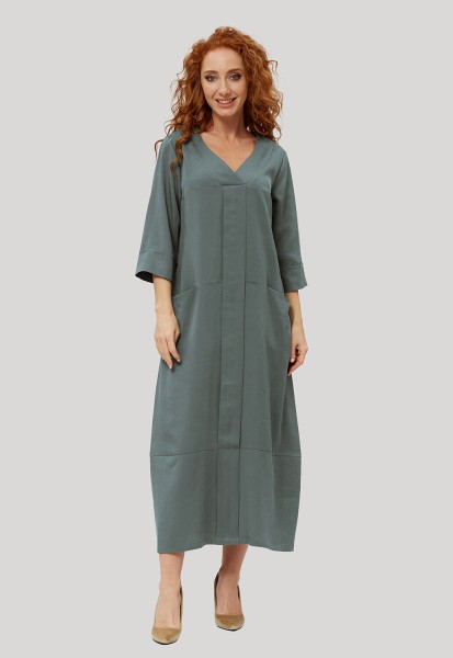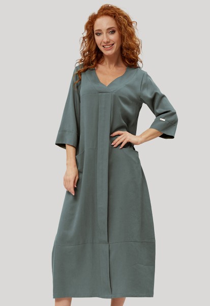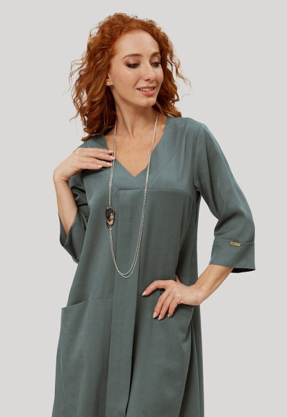 Стильное, универсальное платье в минималистическом кэжуал - стиле комфортной длины от российского производителя D’imma Fashion Studio из натуральной ткани - олицетворение женственности, привлекательности и уверенности. Модель на кокетке с актуальным V-образным вырезом, визуально удлиняющим шею. Вырез обработан широкой обтачкой, переходящей в бантовую складку по центру переда. Втачной рукав с цельнокроеной манжетой делает его интересным и модным. По переду горизонтальный рез ниже линии талии с цельнокроеными карманами придаст модели удобства и стиля. Данное платье свободного силуэта будет изумительно смотреться не только на моделях из дизайнерских коллекций, но и на корпулентных девушках. Можно дополнять яркими аксессуарами и менять образ под настроение. Модель создана для тех, кто любит быть индивидуальным и неповторимым.