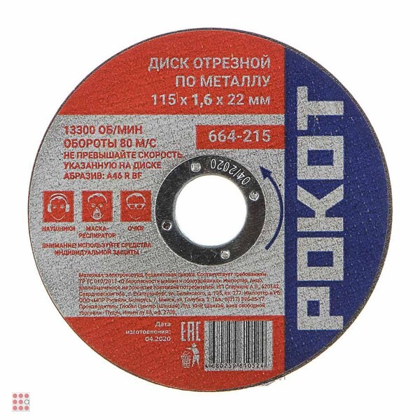 Диск отрезной по металлу РОКОТ 115х1,6х22мм
