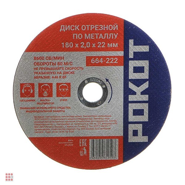 Диск отрезной по металлу РОКОТ 180х2,0х22мм