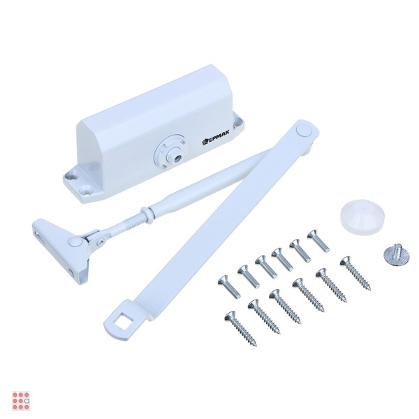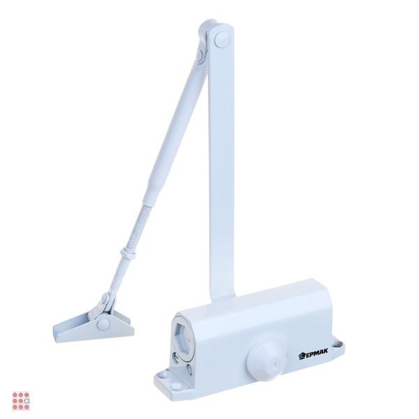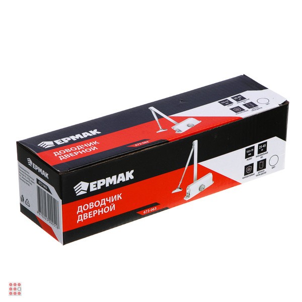 Дверные доводчики ЕРМАК предназначены для плавного, автоматического закрытия двери. Подходит для большинства пластиковых, деревянных и металлических дверей. Устанавливаются в квартирах, офисах, промышленных и других помещениях. Универсальный установочный размер в серии легких доводчиков (162-168 мм ) за счет овальных отверстий в корпусе.Функции:Регулируемая скорость закрывания двериРегулируемая скорость окончательной доводки.Основные характеристики:•Отвечают нормам международного стандарта•Материал корпуса– сплав алюминия ADC12.•Материал пружины- закаленная сталь (закалка в масле),•Используемое гидравлическое масло обеспечивает работоспособность доводчиков от -35 ° до +50 °С. Температура застывания масла -45 ° С•Плавность и высокую эффективность работы обеспечивают игольчатые подшипники.•Цвет (корпус и крепление): коричневый , серебро, белый.•Устанавливаются на двери шириной от 900 до 950 мм•Максимальный угол открытия двери 180 ° .•Масса двери от 25-45 кг•Рабочий режим: более 200 000 циклов бесперебойной работы