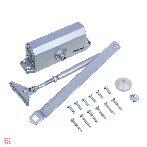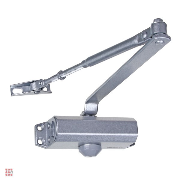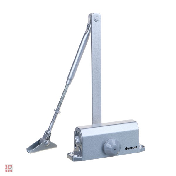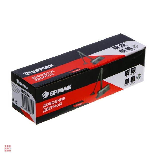 Дверные доводчики ЕРМАК предназначены для плавного, автоматического закрытия двери. Подходит для большинства пластиковых, деревянных и металлических дверей. Устанавливаются в квартирах, офисах, промышленных и других помещениях. Универсальный установочный размер в серии легких доводчиков (162-168 мм ) за счет овальных отверстий в корпусе.Функции:Регулируемая скорость закрывания двериРегулируемая скорость окончательной доводки.