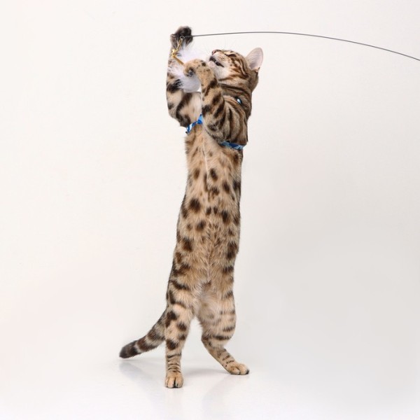 Такая удочка и развлекает питомца, и дрессирует одновременно, помогая кошке также держать мыщцы в тонусе, развивать сообразительность и реакцию.
