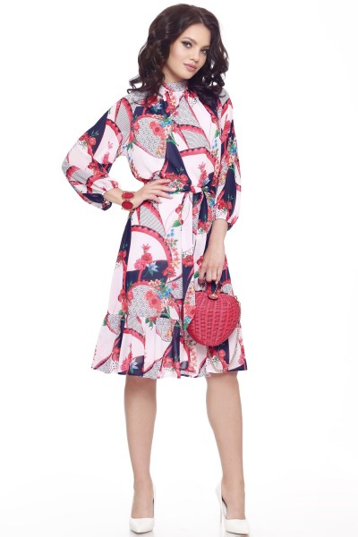 Богемное платье с рукавом реглан и воротничком-стойкой выполнено из шифона с подкладом. За счет свободного силуэта с поясом и воланом по низу юбки платье получает мягкие свободные формы, что выглядит очень романтично. Рукава присобраны на тоненький манжет. Застежка платья на пуговицах. Абсолютно самодостаточная вещь, и в пир, и в мир.