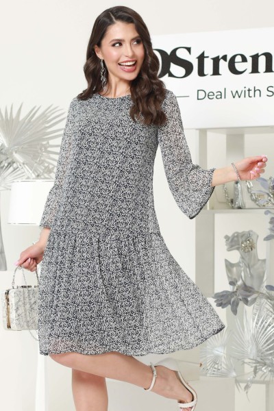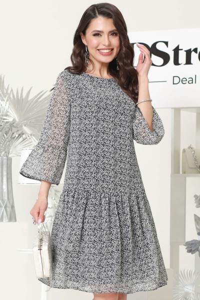 Летящие слои легкого шифона и рюши на рукавах и по подолу задают образу романтический тон. Платье свободное, легкое и воздушное, подходит любой фигуре и любой ситуации, одинаково уместно на улице, в офисе или на вечеринке.