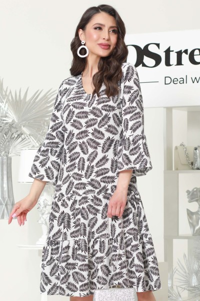 Еще один хит в нашей коллекции. А-силуэт, воланы на рукавах и подоле — формула вечного успеха. Только в этот раз треугольный вырез декольте, который визуально удлиняет шею. Новый вариант для вашего роскошного гардероба!
