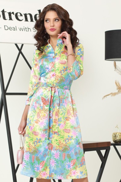 Элегантное атласное платье-рубашка на любой случай. Строгий фасон и эффектные материалы в сочетании придают платью универсальность, такое можно выбрать и в офис, особенно если у вас не строгий дресс-код, и выйти на открытие выставки или в кафе. Рукава заканчиваются манжетом. В комплекте идет пояс из той же ткани.
