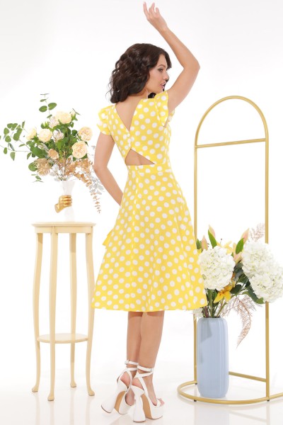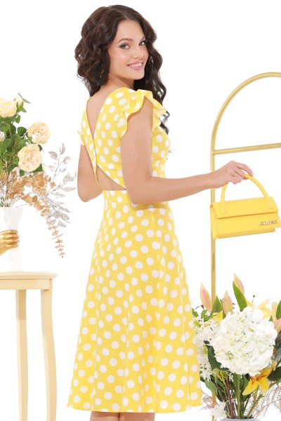 Милое летнее платье с вырезом на спинке, напоминает своим кроем сарафан и будет незаменимо жарким летом. Эффектные вырезы на спинке, небольшие рукава-крылышки и расклешенная юбка, создают легкий, романтический образ. Удобная застежка на пуговицы и молния сзади позволят вам легко надеть и снять его, не повредив прическу и макияж.