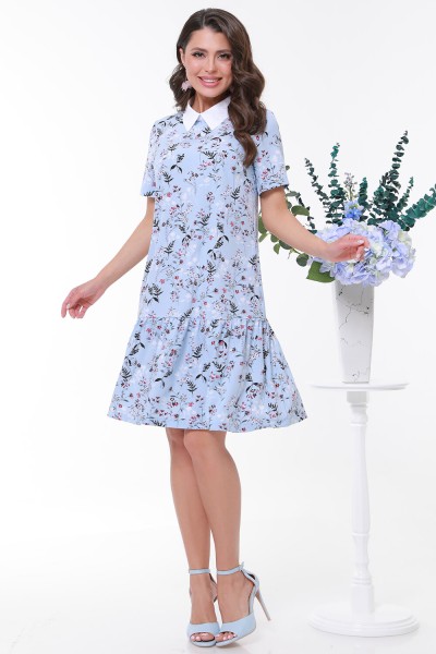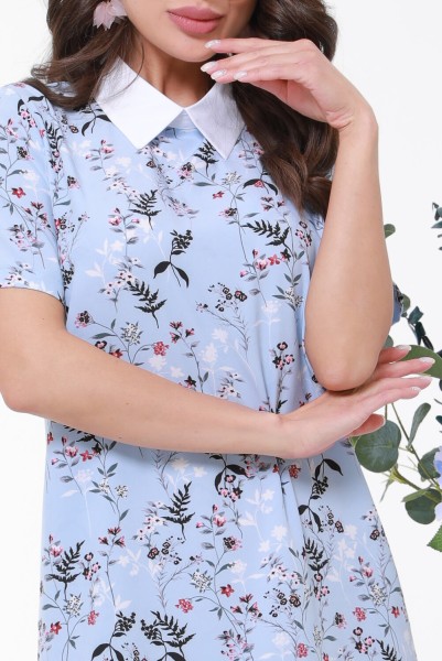 Элегантное платье прямого силуэта с коротким втачным рукавом и воланом по низу. Классический сорочечный воротничок придает ему деловой настрой. Прекрасный выбор для бизнес-леди, офисных сотрудников и педагогов.