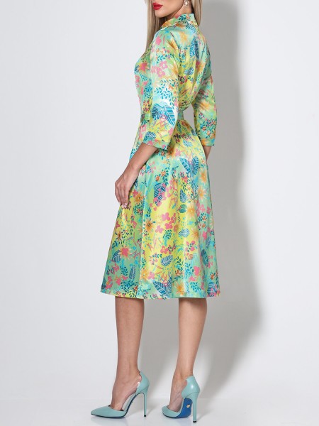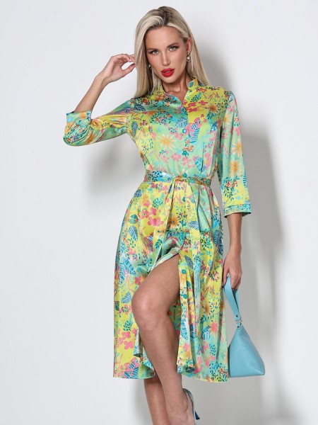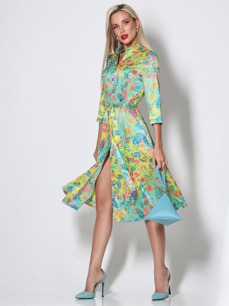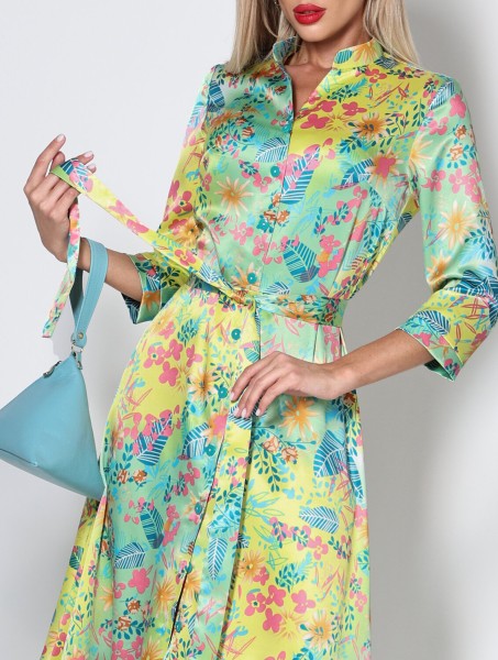 Атласное платье на пуговицах с поясом — элегантность и стиль в одном флаконе. Полуприлегающий силуэт с расклешенной юбкой красиво подчеркивает фигуру, привлекательно струится в движении и помогает сгладить недостатки. Платье-рубашка с воротником-стойкой застегивается на вертикальный ряд пуговиц. Пояс в тон создает женственный акцент на талии, а рукава длиной ¾ добавляют образу изящности. Особый шарм придает платью атласный материал с цветочным принтом, который эффектно переливается на свету. Утонченная модель станет прекрасным выбором для праздника, вечернего мероприятия, корпоратива или романтического свидания, преобразит фигуру и соберет множество комплиментов. Чтобы атласное платье долго радовало вас красотой, рекомендуется стирать его в деликатном режиме без отжима при температуре до 30 градусов.