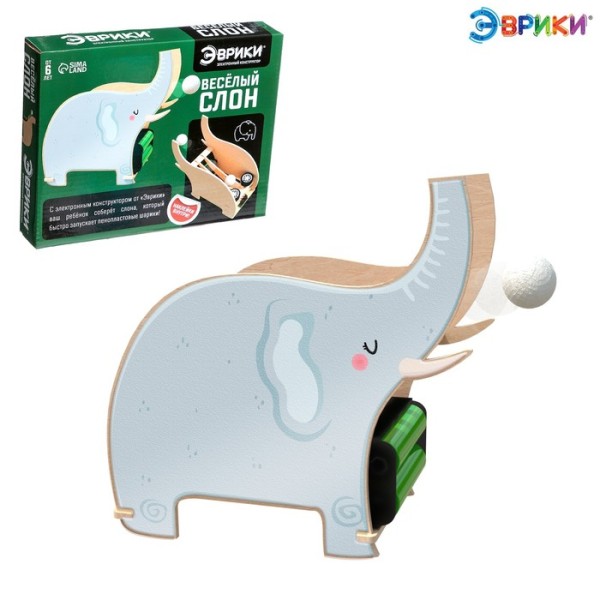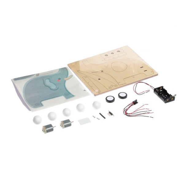 * Подвижная игрушка: из 26 деревянных и пластиковых деталей собирается забавный слон. После подключения батареек модель начинает двигаться, демонстрируя простые механические принципы.