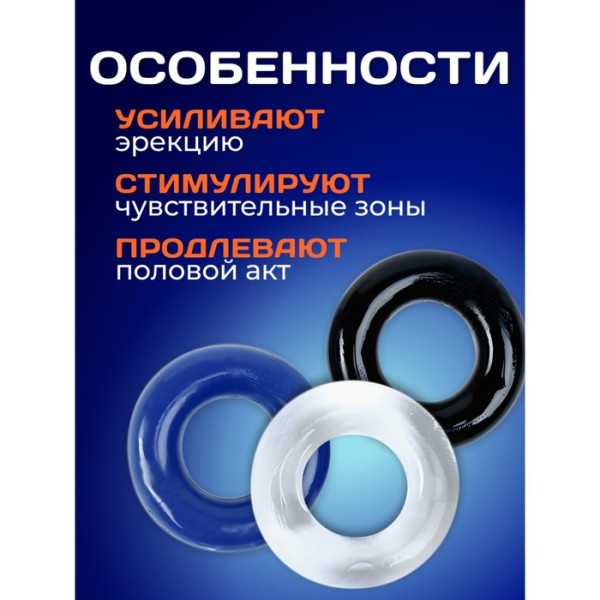 Эрекционные кольца, гелевый силикон, гладкие, набор 3 шт