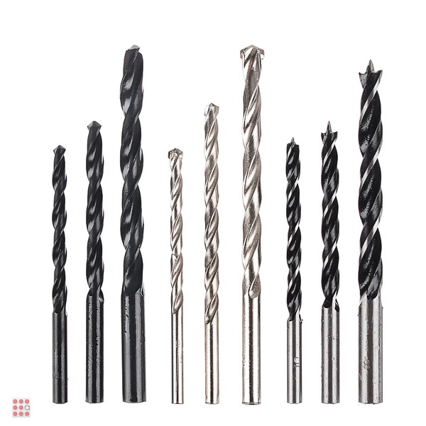 Сверла по дереву - 3 шт. (5/6/8 мм)Сверла по металлу - 3 шт. (5/6/8 мм)Сверла по бетону - 3 шт. (5/6/8 мм)