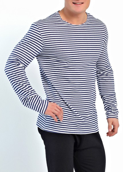 Фуфайка с длинным рукавом, с круглым вырезом горловины, свободного кроя в набивку "тельняшка" и "камуфляж". Плотность: 140гр/м2
