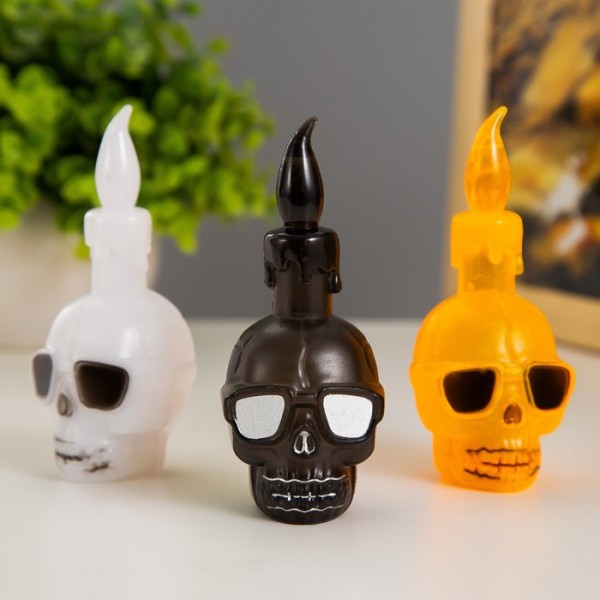 Фигурка светящаяся RISALUX «Череп», LED-ночник, RGB, 3×AG10, 5.5×5.5×9 см, МИКС