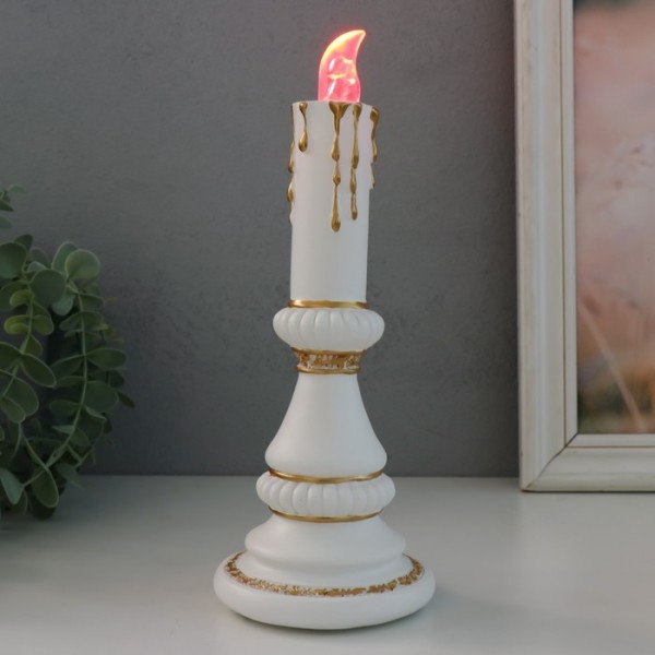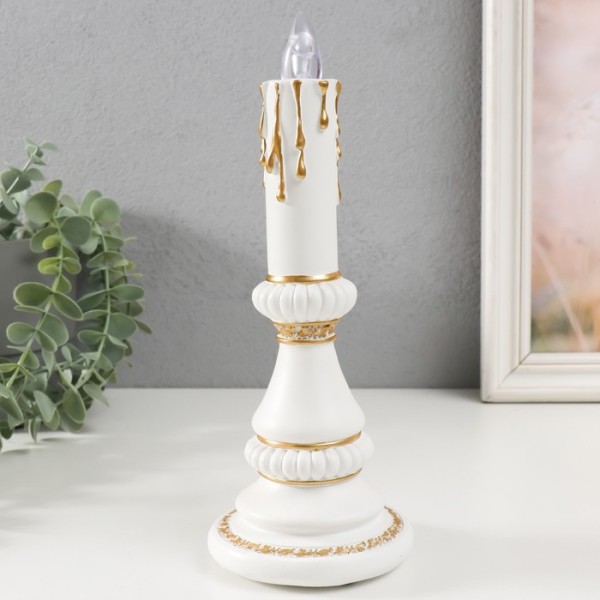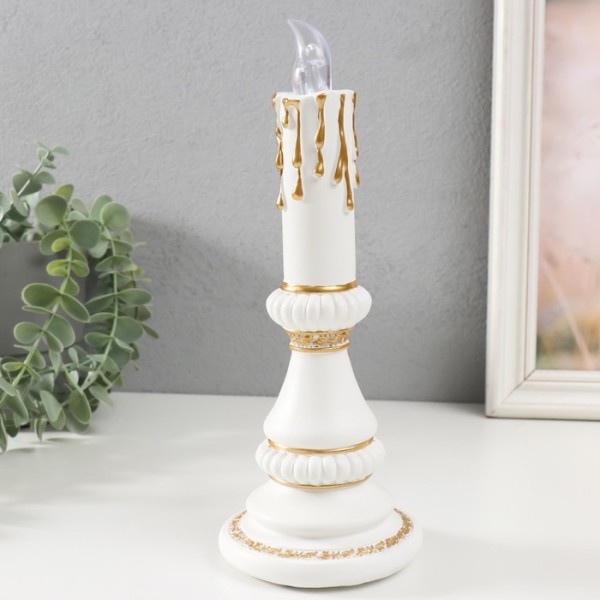 Фигурка светящаяся «Свеча светодиодная», полистоун, 2×LR=44, белый с золотом, 10×10×24.5 см