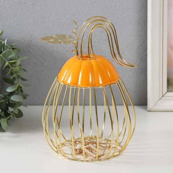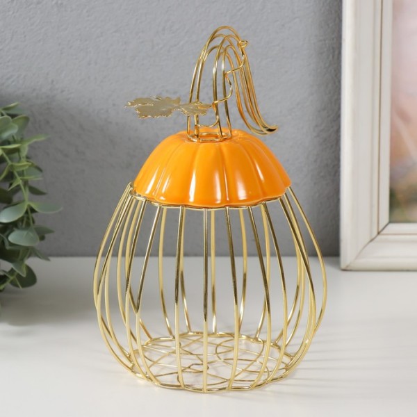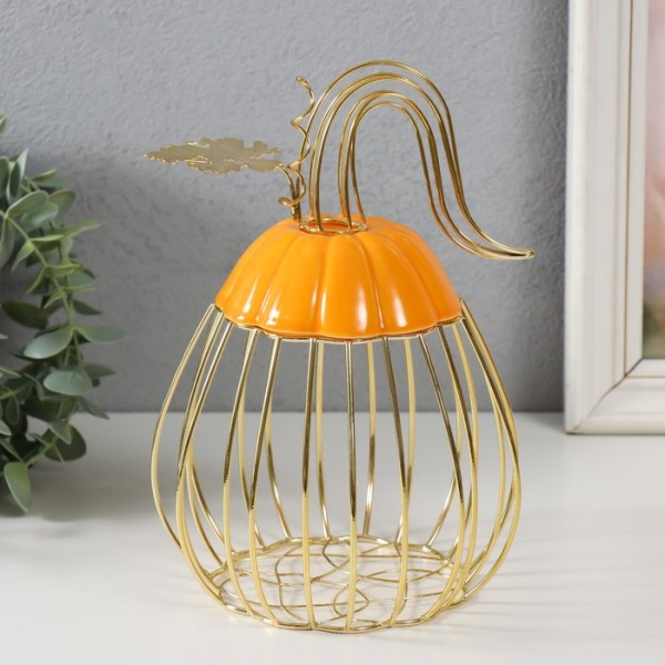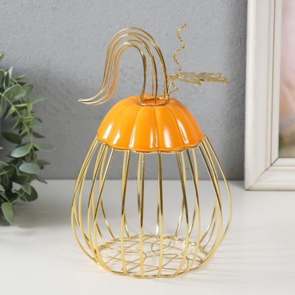 Фигурка-вазон «Тыква с листочком», подставка, металл, керамика, оранжевая с золотом, 14.3×14.3×21 см