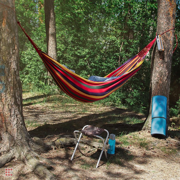 Полосатый гамак дарит комфортный отдых на свежем воздухе. Мягкое покачивание расслабляет, успокаивает и позволяет ощутить истинное наслаждение от пребывания на природе. Изделие сшито из двух высококачественных материалов: воздухопроницаемого хлопка и прочного полиэстера. Максимальная нагрузка составляет 100 кг. Купить полосатый гамак РУССО ТУРИСТО можно для дачи и сада в двух цветовых вариантах.
