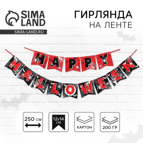 Гирлянда на ленте на Хэллоуин Happy Halloween, длина 250 см