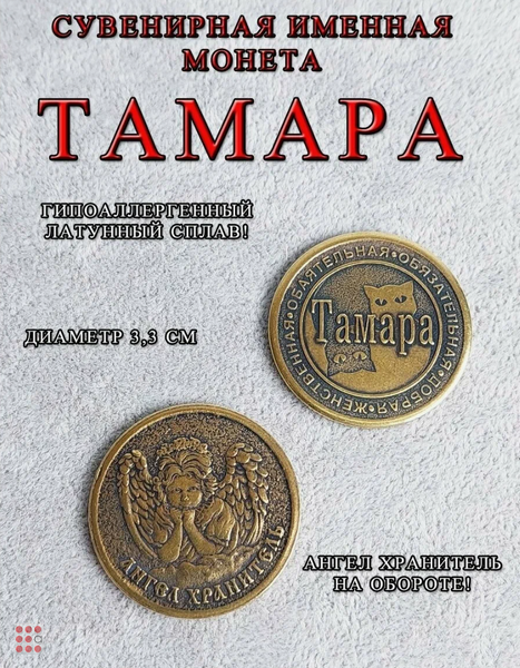 Диаметр: 32 ммВес: 12 грНа реверсе монеты Ангел Хранитель.