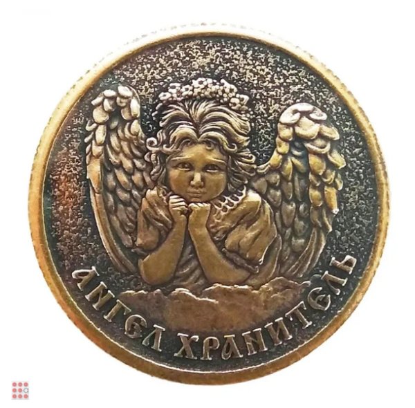 Диаметр: 32 ммВес: 12 грНа реверсе монеты Ангел Хранитель.