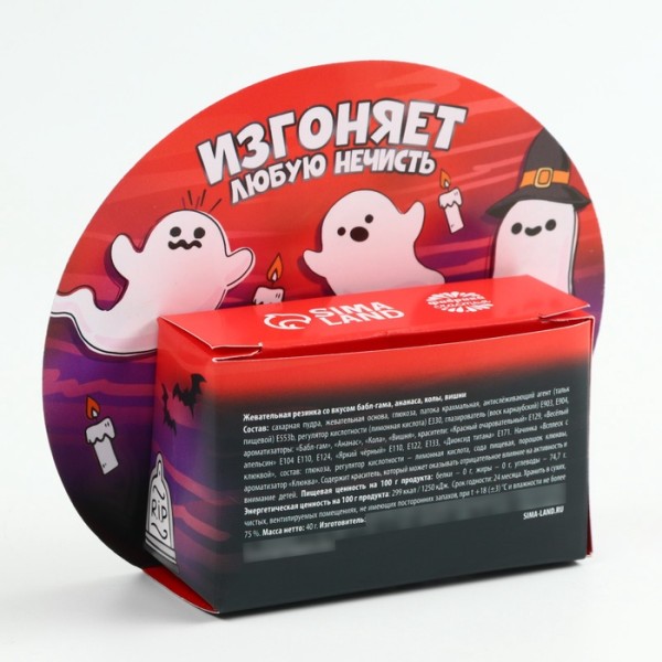 Состав: сахарная пудра, жевательная основа, глюкоза, патока крахмальная, антислёживающий агент (тальк пищевой) Е553b, регулятор кислотности (лимонная кислота) Е330, глазирователь (воск карнаубский) Е903, Е904, ароматизаторы: «Бабл-гам», «Ананас», «Кола», «Вишня», красители: «Красный очаровательный» Е129, «Весёлый апельсин» Е104 Е110, Е124, «Яркий чёрный» Е110, Е122, Е133, «Диоксид титана» Е171. Начинка «Всплеск с клюквой», состав: глюкоза, регулятор кислотности – лимонная кислота, сода пищевая, порошок клюквы, ароматизатор «Клюква».