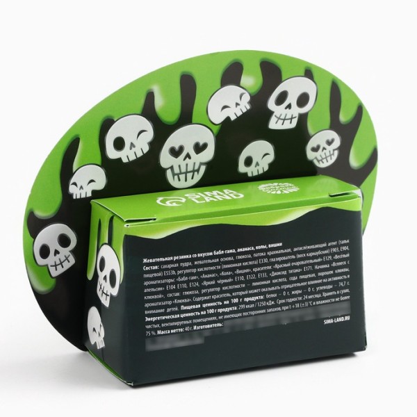 Состав: сахарная пудра, жевательная основа, глюкоза, патока крахмальная, антислёживающий агент (тальк пищевой) Е553b, регулятор кислотности (лимонная кислота) Е330, глазирователь (воск карнаубский) Е903, Е904, ароматизаторы: «Бабл-гам», «Ананас», «Кола», «Вишня», красители: «Красный очаровательный» Е129, «Весёлый апельсин» Е104 Е110, Е124, «Яркий чёрный» Е110, Е122, Е133, «Диоксид титана» Е171. Начинка «Всплеск с клюквой», состав: глюкоза, регулятор кислотности – лимонная кислота, сода пищевая, порошок клюквы, ароматизатор «Клюква».