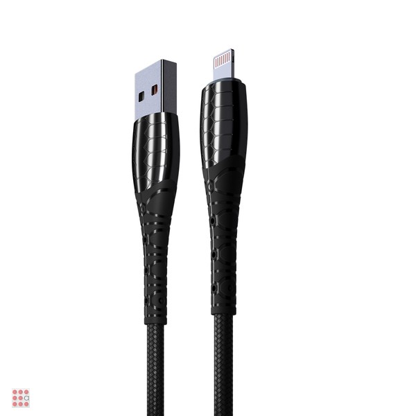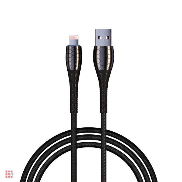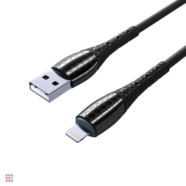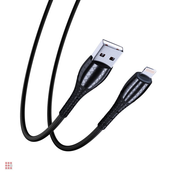 Кабель для зарядки Богатырь iP, 1м, Быстрая зарядка 2.4А, 12W, тканевый, черный