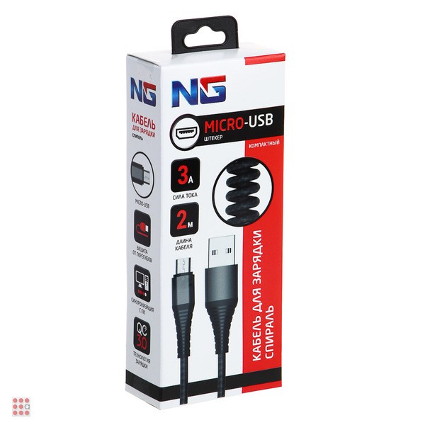 Кабель для зарядки Спираль Micro-USB, 2 м, 3А, быстрая зарядка QC3.0, 3 цвета