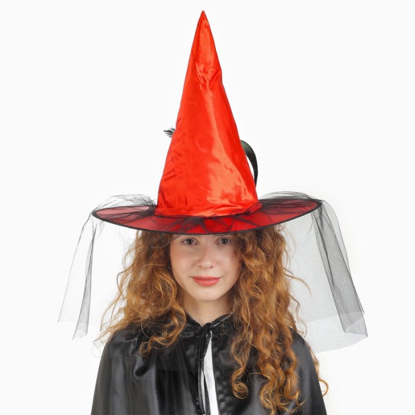 Карнавальная шляпа «Ведьмочка», с фатой, красная
