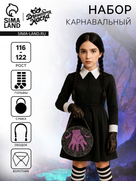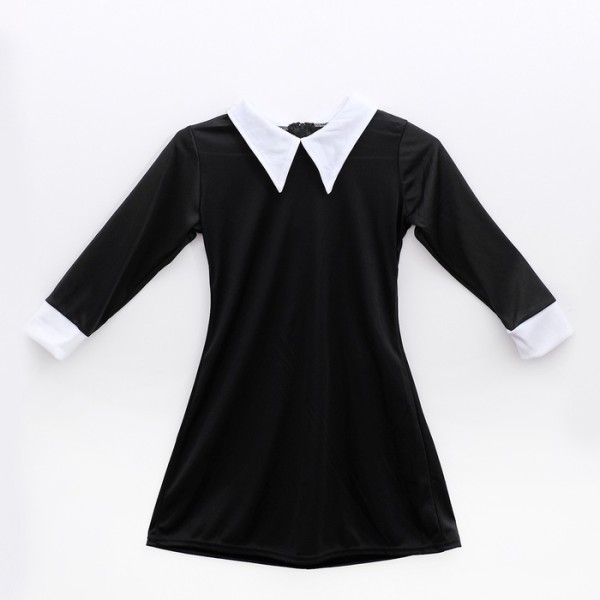 * Платье — элегантное чёрное платье с контрастным белым воротником. Идеальная основа для создания загадочного образа.