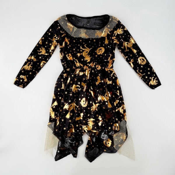 * Платье из мягкой ткани чёрного цвета с ярким золотым принтом. Элементы из сетки добавляют образу загадочности.