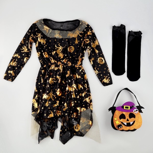 Карнавальный костюм «Ведьма»: платье, шляпа, чулки, сумка, рост 104-110 см