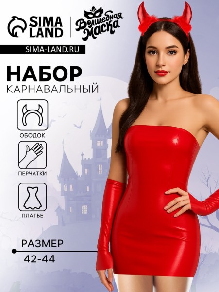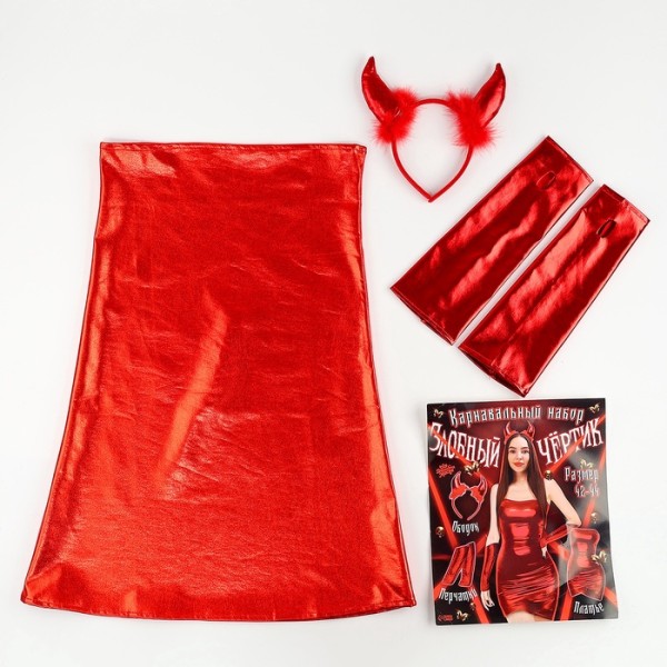Карнавальный костюм «Злобный чёрт»: платье, перчатки, ободок, р-р 42-44, красный