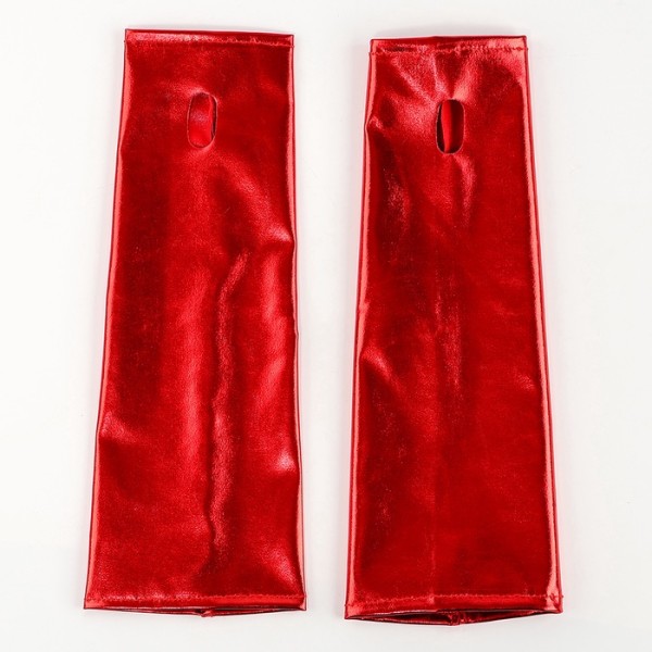 * Перчатки: Блестящие красные перчатки c прорезью для пальца завершат образ и добавят нотку роскоши.