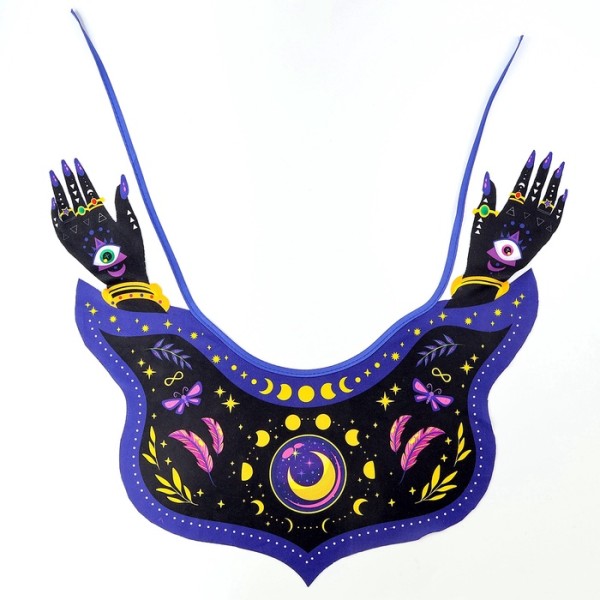 * Воротник — выполнен из мягкого фетра и декорирован завораживающими узорами. Он завязывается на шее, что позволяет регулировать его длину и плотность. Воротник добавит вашему костюму изысканности и таинственности.