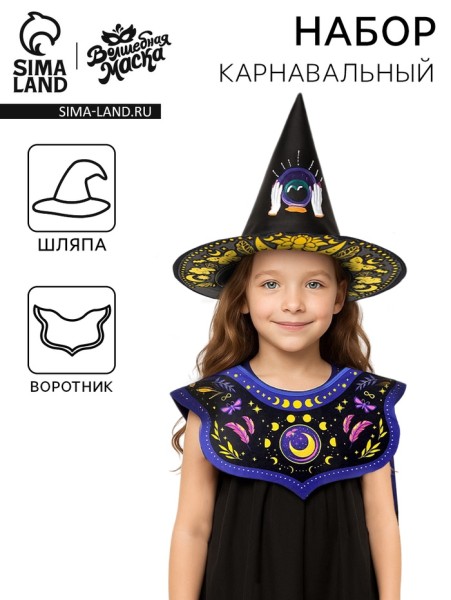 Карнавальный набор «Тёмная ведьма»: шляпа, воротник