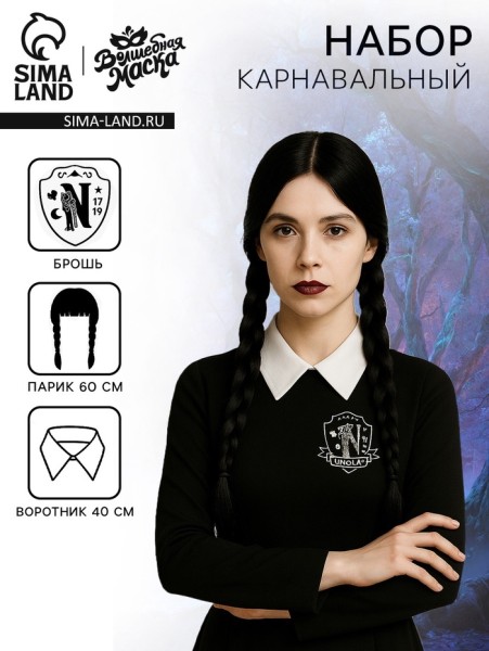 Карнавальный набор «Загадочная ученица»: воротник, парик с чёлкой, брошь