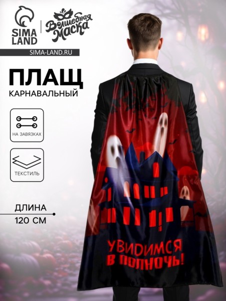 С карнавальным плащом «Увидимся в полночь» вы станете настоящей звездой на тематической вечеринке и поразите всех гостей! Он эффектно дополнит ваш костюм. Создавайте яркие эмоции и воспоминания на целый год вперёд!