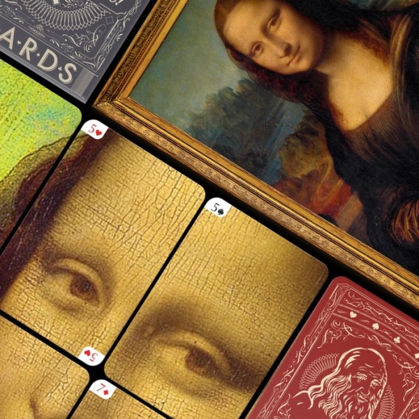 Перед вами игральные карты с иллюстрациями произведения Леонардо да Винчи «Мона Лиза». Прелесть этой колоды в том, что её можно сложить как пазл и получить цельную картину.