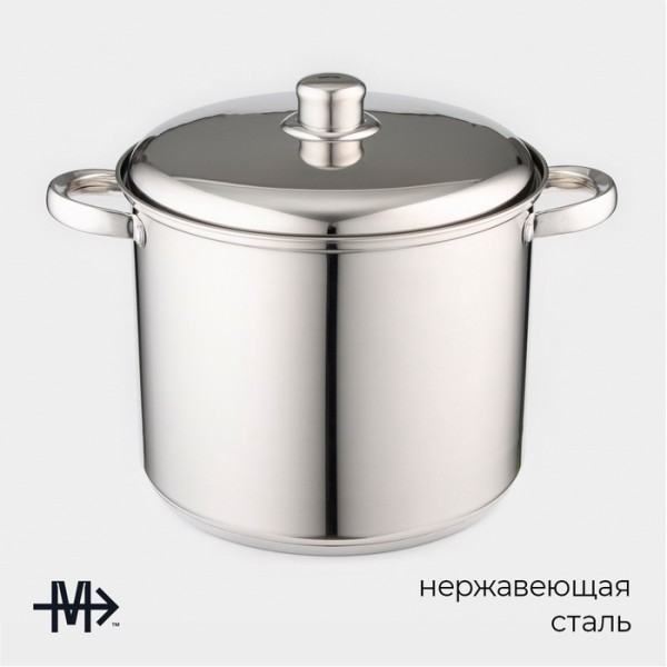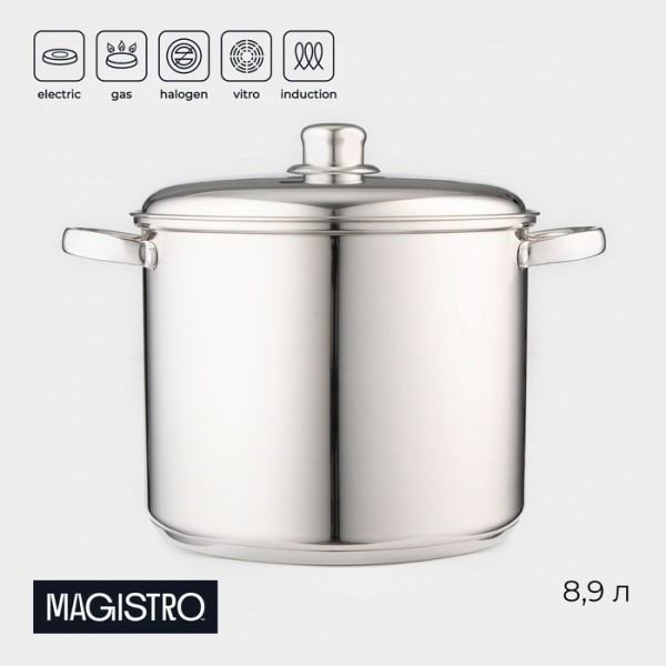 Кастрюля Magistro Grande, 8.9 л, металлическая крышка, капсульное дно, индукция, нержавеющая сталь
