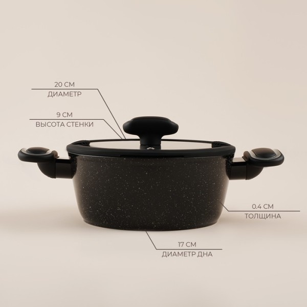 Кастрюля SL Home, d=20 см, h=8.8 см, индукция, с эмалированным покрытием, алюминий, чёрная