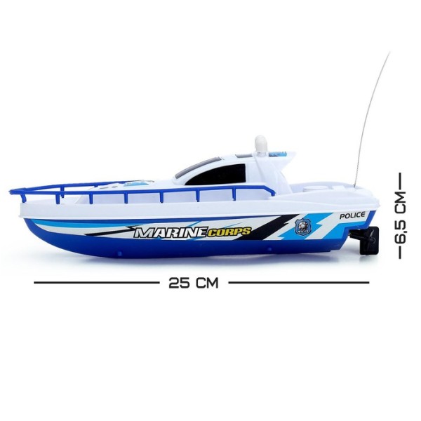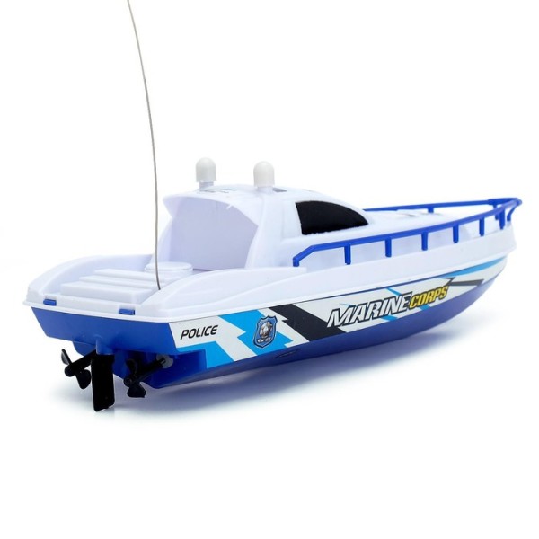 * Плавает по воде: игрушка не просто движется по поверхности воды, но и выглядит как настоящий полицейский катер. Прочный пластик и металлические элементы обеспечивают долговечность, а синий цвет добавляет реализма и заметности.